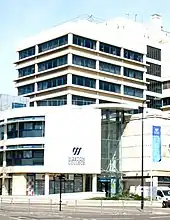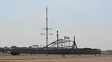 On 28 July 2008, the pavilion at the end of the Grand Pier was completely destroyed by a fire. Eleven fire engines and 80 firefighters could not contain the blaze, which is believed to have started in the north-east tower of the Pavilion.[45] A competition was held to design a new pavilion, and the project was awarded to the winning architect Angus Meek Architects of Bristol. Construction work began on the pier and new pavilion in 2009, and it was scheduled to reopen in July 2010,[46] after a £39 million rebuilding programme. After continuing problems and setbacks, with the pier not opening until a formal opening ceremony on 23 October 2010, the overall costs reached £51 million. During the same period there was a £34 million redevelopment of the promenade, including refurbishment of the Marine Lake and pedestrianisation of Pier Square. As part of the work, a scour protection apron and splash wall were added as part of flood prevention measures.[47]