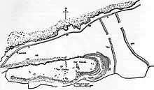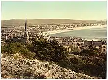 Weston's oldest structure is Worlebury Camp, on Worlebury Hill, dating from the Iron Age.[11][12][13] Castle Batch was a castle that once stood overlooking the town. The present site has an earthwork mound of 160 feet (50 m) in diameter which is believed to be the remains of a motte.[14]
