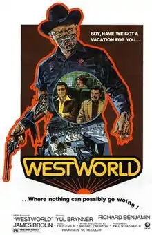 Westworld is a 1973 American science fiction Western film written and directed by Michael Crichton. The film follows adult guests visiting an interactive amusement park containing lifelike androids that unexpectedly begin to malfunction. The film stars Yul Brynner as an android in the amusement park, with Richard Benjamin and James Brolin as guests of the park.