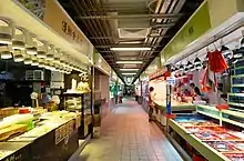 Wet markets in Singapore are subsidized by the government.[49] The Tekka Market, Tiong Bahru Market, and Chinatown Complex Market are prominent wet markets containing seasonal fruit, fresh vegetables, imported beef, and live seafood.[131]