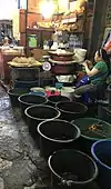 Since the 1990s, large cities across China have moved traditional outdoor wet markets to modern indoor facilities.[47][1] As of 2018, wet markets remained the most prevalent food outlet in urban regions of China despite the rise of supermarket chains since the 1990s.[105] During the 2010s, "smart markets" equipped with e-payment terminals emerged as traditional wet markets faced increasing competition from discount stores.[106] Wet markets also began facing competition from online grocery stores, such as Alibaba's Hema stores.[20]