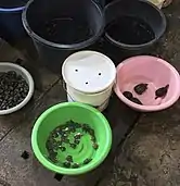 The term "public market" may be synonymous with "wet market",[1][2][3] although it may sometimes refer exclusively to state-owned and community-owned wet markets.[1][2][3] Wet markets may also be called "fresh food markets" and "good food markets" when referring to markets consisting of numerous competing vendors primarily selling fresh produce like fruits and vegetables.[9] The term "wet market" is frequently used to signify a live animal market that sells directly to consumers,[18][19] although the terms are not synonymous.[25][45]
