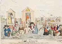The resort is among the first modern tourist destinations, after King George III's brother, the Duke of Gloucester, constructed an English country house named Gloucester Lodge there; the Duke spent the winter of 1780 at the house.[15] George III made Weymouth his summer holiday residence on fourteen occasions between 1789 and 1805,[16] even venturing into the sea in a bathing machine.