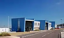 The immediate aftermath of the war was a difficult time for Weymouth which, in common with other seaside resorts, was not seen as a priority for government investment.[4] In 1960, Southampton stopped services to the Channel Islands, leaving Weymouth as the UK's major link with the islands. A linkspan constructed in 1972 and the introduction of a passenger service to Cherbourg in 1974 helped to further revive the town's fortunes.[28] During the 1970s, cheap package holidays abroad caused a reduction in the town's tourist trade, and harbour trade also suffered a decline; but the number of ferry passengers continued to rise and in 1980 a new terminal with improved facilities was built.[9][28] From 1990, the demand for bigger vessels forced the cross-channel ferry operators to transfer to larger ports, such as Poole; the last ferry left Weymouth in 2015.[4][28][29]
