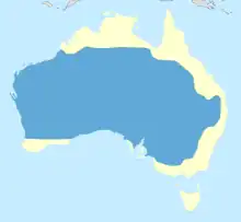 The distribution of the three bi-coloured fairywren species indicates their ancestors lived across New Guinea and northern Australia in a period when sea levels were lower and the two regions were joined by a land bridge. Populations became separated as sea levels rose, and New Guinea birds evolved into the white-shouldered fairywren, and Australian forms into the red-backed fairywren and the arid-adapted white-winged fairywren.[23]
