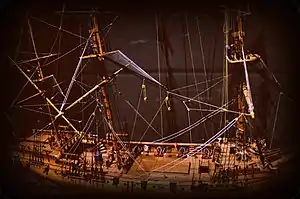 Whydah Gally was then fitted with 10 additional cannons by its new captain, and 150 members of Bellamy's crew were detailed to man the vessel.[11] They razeed the ship by clearing the top deck of the pilot's cabin, removing the slave barricade, and getting rid of other features that made her top heavy.[12]