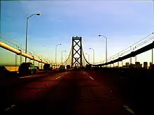In 1990, Gibson contributed to "Visionary San Francisco", an exhibition at the San Francisco Museum of Modern Art shown from June 14 to August 26.[106] He wrote a short story, "Skinner's Room", set in a decaying San Francisco in which the San Francisco–Oakland Bay Bridge was closed and taken over by the homeless – a setting Gibson then detailed in the Bridge trilogy. The story inspired a contribution to the exhibition by architects Ming Fung and Craig Hodgetts that envisioned a San Francisco in which the rich live in high-tech, solar-powered towers, above the decrepit city and its crumbling bridge.[107] The architects exhibit featured Gibson on a monitor discussing the future and reading from "Skinner's Room".[90] The New York Times hailed the exhibition as "one of the most ambitious, and admirable, efforts to address the realm of architecture and cities that any museum in the country has mounted in the last decade", despite calling Ming and Hodgetts's reaction to Gibson's contribution "a powerful, but sad and not a little cynical, work".[107] A slightly different version of the short story was featured a year later in Omni.[108]