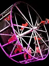 Gibson has contributed text to be integrated into a number of performance art pieces. In October 1989, Gibson wrote text for such a collaboration with acclaimed sculptor and future Johnny Mnemonic director Robert Longo[41] titled Dream Jumbo: Working the Absolutes, which was displayed in Royce Hall, University of California Los Angeles. Three years later, Gibson contributed original text to "Memory Palace", a performance show featuring the theater group La Fura dels Baus at Art Futura '92, Barcelona, which featured images by Karl Sims, Rebecca Allen, Mark Pellington with music by Peter Gabriel and others.[90] It was at Art Futura '92 that Gibson met Charlie Athanas, who would later act as dramaturg and "cyberprops" designer on Steve Pickering and Charley Sherman's adaptation of "Burning Chrome" for the Chicago stage. Gibson's latest contribution was in 1997, a collaboration with critically acclaimed Vancouver-based contemporary dance company Holy Body Tattoo and Gibson's friend and future webmaster Christopher Halcrow.[105]
