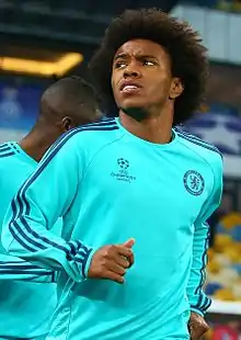 A fast, agile, and technically gifted player, Willian is known for his quick feet, acceleration, and explosive style of play, which allows him to dribble past opponents at speed whilst keeping close control of the ball which is typically a Brazilian style. He has also been known to pull off feints and tricks, such as the elastico, in order to confuse and beat defenders.[105][106][107][108] He primarily plays as a winger,[109][110][111] and his high stamina, vision and creativity enables him to link-up play between the deeper midfielders and the forwards, and create goalscoring chances.[107][110] During the 2015–16 season, while at Chelsea, he showed his prowess at direct free-kicks,[112] with almost all his goals coming from set pieces.[110] He improved the statistics of his attacking game due to which he was called Chelsea's top performer of the season.[109][113]