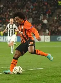 He played in the Super Cup penalty shoot-out victory over Dynamo Kyiv on 15 July, being replaced by Brandão after 46 minutes.[11] On 27 August, he scored a goal in a 3–1 victory over Dinamo Zagreb in the Champions League.[12] On 1 November, he scored his first league goal for Shakhtar in a 3–1 win against Zorya Luhansk.[13] On 16 November, he scored the only goal in a 1–0 victory over Dynamo Kyiv.[14] He scored the goal of the match in a 1–0 victory against Chornomorets Odesa on 25 April.[15]