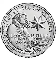 In 2021 it was announced that Mankiller's likeness would appear on the quarter-dollar coin[2] as a part of the United States Mint's "American Women Quarters" program.[3]