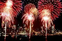 Summers are hot and humid,[20] with a July mean temperature of 23.0 °C (73 °F) (the highest such mean in Canada, with the warmest summer nights in the country) although the humidex (combined feel of temperature and humidity) reaches 30 or higher on 70 days in an average summer; the highest recorded humidex in Ontario, 52.1, occurred on June 20, 1953. Temperatures remain warm during summer nights due to the high humidity. Windsor has some of the warmest summer night time temperatures in Canada.[18] Thunderstorms are common during summer and occur on average 32 days per year, some of them severe with high winds, heavy rainfall, flooding, intense lightning, hail and less often, tornadic activity[20][18] Winters are generally cold with a January mean temperature of −3 °C (27 °F).[18] Windsor is not in the traditional lake-effect snowbelts but does occasionally see lake-effect snow that originates over Lake Michigan. Snow cover is intermittent throughout the winter; on average there are 53 days each year with snow on the ground. There are typically three to five major snowfalls each winter. Windsor has the highest number of days per year with lightning, haze, and daily maximum humidex over 30 °C (86 °F) of cities in Canada.[24] Windsor is also home to Canada's warmest fall, with the highest mean temperatures for the months of September, October and November.[24] Precipitation is generally well-distributed throughout the year. There are on average 2,261 sunshine hours per year in Windsor.[25]