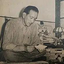 Wenders employed Peter Handke, who wrote much of the dialogue, the poetic narrations, and the film's recurring poem "Song of Childhood".[9] Wenders found the names Damiel and Cassiel in an encyclopedia about angels, and also had photographs of Solveig Dommartin, Bruno Ganz and Otto Sander that served as muses.[7] The idea that angels could read minds led to Wenders considering personal dialogue no one would say aloud.[5] Wenders did not view the angel protagonist as representative of himself, instead deciding the angel could be an embodiment of film, and that the purpose of film could be to help people by opening their eyes to possibilities.[10] Handke did not feel able to write a single coherent story, but promised to regularly send notes on ideas during production.[11] Screenwriter Richard Reitinger also assisted Wenders in scripting scenes incorporating Handke's contributions.[12]