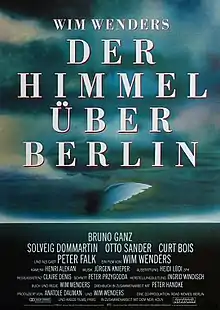 Wings of Desire (German: Der Himmel über Berlin, pronounced [deːɐ̯ ˈhɪml̩ ˈʔyːbɐ bɛʁˈliːn] ⓘ; lit. 'The Heaven/Sky over Berlin') is a 1987 romantic fantasy film written by Wim Wenders, Peter Handke and Richard Reitinger, and directed by Wenders. The film is about invisible, immortal angels who populate Berlin and listen to the thoughts of its human inhabitants, comforting the distressed. Even though the city is densely populated, many of the people are isolated or estranged from their loved ones. One of the angels, played by Bruno Ganz, falls in love with a beautiful, lonely trapeze artist, played by Solveig Dommartin. The angel chooses to become mortal so that he can experience human sensory pleasures, ranging from enjoying food to touching a loved one, and so that he can discover human love with the trapeze artist.
