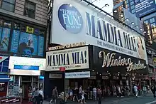 Mamma Mia! was booked for the Winter Garden shortly after Cats closed,[264] with a premiere in October 2001.[265][266] Following the Shuberts' discussions with GM, the theater was renamed the Cadillac Winter Garden Theatre in May 2002.[267][268] As part of a settlement with the United States Department of Justice in 2003, the Shuberts agreed to improve disabled access at their 16 landmarked Broadway theaters, including the Winter Garden.[269][270] At the beginning of 2007, GM's sponsorship ended and the venue returned to its original name.[271] Mamma Mia! was similarly long-running, transferring to the Broadhurst in 2013 to make way for Rocky the Musical.[272][273] Rocky opened in 2014 and ran for 188 performances.[274][275] This was followed in 2015 by a short run of Wolf Hall Parts One & Two,[276][277] as well as a much longer run of School of Rock, which closed in early 2019 after over 1,300 performances.[278][279]