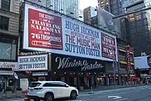 Beetlejuice opened in April 2019,[280][281] but the Shuberts announced the same December that Beetlejuice would be relocated to make way for a revival of Meredith Willson's The Music Man.[282] In March 2020, the theater closed due to the COVID-19 pandemic;[283] Beetlejuice's run, which had been scheduled to end that June, ended prematurely due to an extension of the COVID-19 closure.[284][285] The musical eventually relocated to the Marquis Theatre in 2022.[286] During its closure, a stagehand at the Winter Garden died after falling while taking down props for Beetlejuice in November 2020;[287][288] the Occupational Safety and Health Administration fined the Shuberts as a result.[289][290] The theater also served as the venue for the 74th Tony Awards in September 2021.[291][292] The Winter Garden reopened on December 20, 2021, with previews of The Music Man,[293][294] which officially opened in February 2022.[295] The production ran for 374 performances through January 2023.[296][297] Back to the Future: The Musical opened at the theater in August 2023.[298][299]