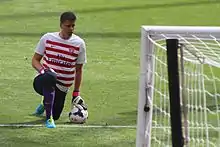 Szczęsny's former goalkeeping coach at Roma, Nanni, praised him in 2017 for his dedication in training, and for his ability to overcome his weaknesses and develop his all–round game, noting that he initially struggled to get to ground quickly to parry the ball and deal with low shots upon his arrival at the club, but that he improved significantly in this area under his tenure; he also lauded the keeper for his intelligence, cool demeanour, and calm composure in goal, as well as his ability with the ball at this feet.[117] In 2020, he labelled him as one of the best goalkeepers in the world,[118] a view which was shared by Juventus's chief football officer Fabio Paratici.[119] During his time with Juventus, Szczęsny drew praise in the media for his decisive performances; in particular he was singled out for his reflexes, fundamental goalkeeping technique, positional sense, and consistency, as well as his efficient rather than spectacular style of goalkeeping, and his ability to handle the pressure of replacing Buffon as the team's first choice goalkeeper.[66][67][103][108][120][121][122] However, his ability to come off his line to deal with high balls or collect crosses has still been cited as an area of weakness by pundits.[114]