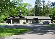 In 1980, a 900-square-foot (84 m2) trailer was added as a temporary park office.[34] The accomplishments of the CCC at Worlds End State Park were recognized in 1987 by the inclusion of the Family Cabin District on the NRHP.[26] In 1997 the park's Important Bird Area (IBA) was one of the first 73 IBAs established in Pennsylvania.[35] On November 12, 2002, a new 4,300-square-foot (399 m2) visitor center and park office was dedicated, which included 1,680 square feet (156 m2) of public space for environmental education and public programs. The building, constructed with an "energy-efficient design and recycled materials", was part of a $1.1 million project that included the park's first flush toilets and sewage treatment plant.[34] In 2003 a $2.7 million project added flush toilets and running water to all the park's wash-houses, renovated the cabins, and made major improvements in the day use area.[36]