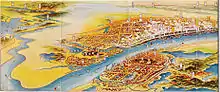 During the Han dynasty, Hanyang became a fairly busy port. The Battle of Xiakou in AD 203 and Battle of Jiangxia five years later were fought in the region over control of Jiangxia Commandery, territories of which included much of present-day eastern Hubei. In the winter of 208/9, one of the most famous battles in Chinese history and a central event in the Romance of the Three Kingdoms—the Battle of Red Cliffs—took place near the Yangtze River, with the cliffs near Wuhan identified as one of the potential locations.[38] Around that time, walls were built to protect Hanyang (AD 206) and Wuchang (AD 223). The latter event marks the foundation of Wuhan. In AD 223, the Yellow Crane Tower, one of the Four Great Towers of China, was constructed on the Wuchang side of the Yangtze River by order of Sun Quan, leader of the Eastern Wu. The tower become a sacred site of Taoism.[39]
