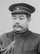 On the night of October 10, the revolutionaries fired shots to signal the uprising at the engineering barracks of Hubei New Army.[51] They then led the New Army of all barracks to join the revolution.[56] Under the guidance of Wu Zhaolin, Cai Jimin and others, this revolutionary army seized the official residence of the governor and government offices.[54] Rui Cheng fled in panic into the Chuyu ship. Zhang Biao, the commander of the Qing army, also fled the city. On the morning of the 11th, the revolutionary army took the whole city of Wuchang, but leaders such as Jiang Yiwu and Sun Wu disappeared.[51] Thus the leaderless revolutionary army recommended Li Yuanhong, the assistant governor of the Qing army, as the commander-in-chief.[57] Li founded the Hubei Military Government, proclaimed the abolition of the Qing rule in Hubei, the founding of the Republic of China and published an open telegram calling for other provinces to join the revolution.[51][54]