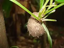 In 1905, the air potato was introduced to Florida and has since become an invasive species in much of the state. Its rapid growth crowds out native vegetation and it is very difficult to remove since it can grow back from the tubers, and new vines can grow from the bulbils even after being cut down or burned.[24]