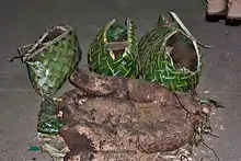 Yam[50] is, along with cassava and taro, a staple food, and is consumed boiled, roasted in a lovo, or steamed with fish or meat in curry sauce or coconut milk and served with rice. The cost of yam is higher due to the difficulty in farming and relatively low volume of production.[50]