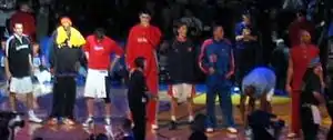 Following an overtime defeat to Spain,[132] Yao scored 30 points in a win over Angola,[133] and 25 points in a three-point win against Germany,[134] which clinched China's place in the quarterfinals. However, China lost to Lithuania in the quarterfinals by 26 points,[135] eliminating them from the tournament. Yao's 19 points a game were the second-highest in the Olympics,[136] and his averages of 8.2 rebounds and 1.5 blocks per game were third overall.[137][138]