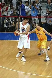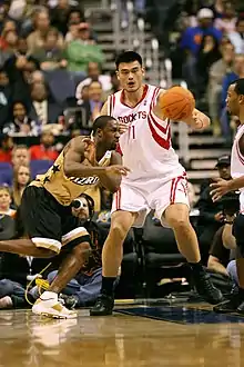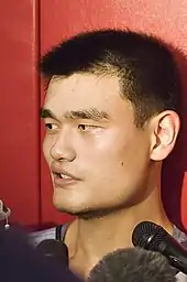 Yao, who was born in Shanghai, started playing for the Sharks as a teenager, and played on their senior team for five years in the CBA, winning a championship in his final year. After negotiating with the CBA and the Sharks to secure his release, Yao was selected by the Rockets as the first overall pick in the 2002 NBA draft. He reached the NBA playoffs four times, and the Rockets won the first-round series in the 2009 postseason, their first playoff series victory since 1997. In July 2011, Yao announced his retirement from professional basketball because of a series of foot and ankle injuries which forced him to miss 250 games in his last six seasons.[2] In eight seasons with the Rockets, Yao ranks sixth among franchise leaders in total points and total rebounds, and second in total blocks.[3]