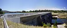 The current geographical boundary of Yarralumla was finalised in the early 1960s with the construction of Scrivener Dam, over which Lady Denman Drive passes, allowing for the Molonglo River to be dammed, creating Lake Burley Griffin.[32] Construction began in September 1960 and the dam was locked on 20 September 1963.[33] The lake reached the planned level on 29 April 1964.[34] On 17 October 1964, Prime Minister Sir Robert Menzies commemorated the filling of the lake.[34][35] Yarralumla was expanded to include Westlake, which had up until then been part of Acton.[21]