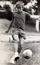 He was also a set-piece specialist, who was renowned for his ability to bend the ball and score from dead ball situations and is considered to be one of the greatest free-kick takers of all time.[3][5][7][13][37] Zico's unique free kick technique, which saw him place significant importance on his standing foot, often saw him lean back and raise his knee at a very high angle when hitting the ball with his instep, thus enabling him to lift it high over the wall, before it dropped back down again; his method of striking the ball allowed him to score free kicks even from close range, within 20 to 16 metres from the goal, or even from just outside the penalty area. Moreover, due to his technique, mentality, unpredictability and accuracy in dead ball situations, he was capable of placing the ball in either top or bottom corner on either side of the goal, which made it difficult for goalkeepers to read his free kicks.[37][47][48] His ability from set-pieces inspired several other specialists, such as Roberto Baggio and Andrea Pirlo.[49][50]