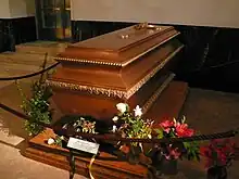 Her funeral was held in Vienna on 1 April. The government allowed it to take place on Austrian soil if the cost was borne by the Habsburgs themselves.[3]: 329 Zita's body was carried to the Imperial Crypt under Capuchin Church[8][9] in the same funeral coach she had walked behind during the funeral of Emperor Franz Joseph in 1916. It was attended by over 200 members of the Habsburg and Bourbon-Parma families, and the service had 6,000 attendees including leading politicians, state officials and international representatives, including a representative of Pope John Paul II.[3]: 329 Following an ancient custom, the Empress had asked that her heart, which was placed in an urn, stay behind at Muri Abbey, in Switzerland, where the Emperor's heart had rested for decades. In doing so, Zita assured herself that in death, she and her husband would remain by each other's side.[1]: 38