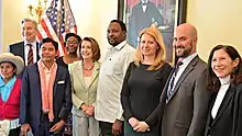 For her strong and resolute leadership regarding the Pezinok landfill affair, Čaputová was awarded the Goldman Environmental Prize in 2016.[36] Laureates of this prize are selected by an international jury and experts from around the world who have distinguished themselves for having a lasting and significant impact on environmental protection. The Goldman award was delivered to Čaputová in San Francisco. Her long and eventually triumphant struggle has been compared to that of the American Erin Brockovich.[14] The text of the prize states that she was awarded for her "relentless campaigning against the opening of a landfill in the town of Pezinok, which, if opened, would further aggravate potential health hazards and would contribute to urban pollution".[37] In recognition of her efforts for the European democracy, Čaputová was awarded the European Prize for Political Culture in August 2019.[38]