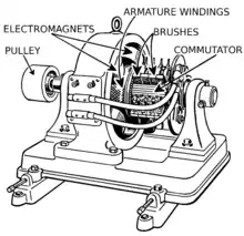 The rotating coil is referred to as the 'Armature' and the magnets are called 'Field Magnets'