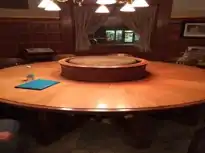This table was custom built with a radiator in the center of it. Its design was very advanced in its time period. It was designed to enhance the comfort of those visiting the Mabel Tainter theater. It is still in working condition almost 125 years later.