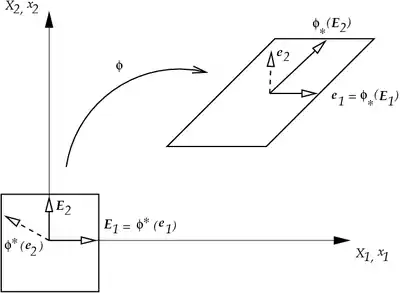 The determinant of the deformation gradient is usually denoted by and is a measure of the change in volume, i.e.,