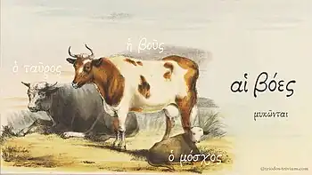 | Nominative | ὁ, ἡ βοῦς ho, hē boûs |