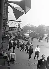 People of Leningrad running through the streets in the early days of the war.