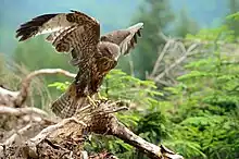 From Byzantine Greek γεράκιν (gerákin), from Koine Greek ἱεράκιον (hierákion). Cognates include Greek γεράκι (geráki).