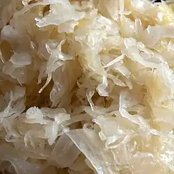 ква́шена капу́ста • (kvášena kapústa) f inan (genitive ква́шеної капу́сти, uncountable)