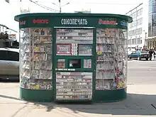кио́ск • (kiósk) m inan (genitive кио́ска, nominative plural кио́ски, genitive plural кио́сков)