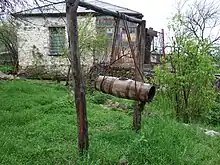 - It is hung on ropes that are fastened around the left and right ends, and usually pushed back and forth by two people.