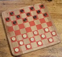 Borrowed from Russianда́мка(dámka, “the king in checkers/draughts”), possibly via Yiddishדאַמקע(damke). Semantically without doubt influenced by GermanDame(“checkers, draughts”) and equivalent names for the game in most European languages, eventually from Frenchjeu de dames.