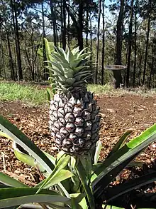 From French ananas, from Spanish ananás, Portuguese ananás, from Old Tupi nanas (“pineapple”).