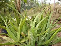 Apparently from one of the Aramaic forms from which are already from Ancient Greek ἀλόη (alóē), as Nöldeke[1] recognizes in view of the first variant being أَلْوًى (ʔalwan), whereafter the obsolete language also affords أُلْوَة (ʔulwa), أُلُوَّة (ʔuluwwa), أَلُوَّة (ʔaluwwa), آلُوَّة (ʔāluwwa), أُولُوَّة (ʔūluwwa), لُوَّة (luwwa), لَيَّة (layya), لِيَّة (liyya), أُلُوّ (ʔuluww), إِلِيَّة (ʔiliyya), though Greppin[2] later assumed the view that Arabic and Ethiopian Semitic directly acquired from a Dravidian language; the Ge'ez ዐልዋ (ʿälwa), ዓልው (ʿalw), ዓልዋ (ʿalwa), አለው (ʾäläw), አልው (ʾälw) are, following Nöldeke, instead from the original non-Greek-derived Aramaic forms represented by Classical Syriac ܥܠܘܝ (ʕalway, ʕelway), Christian Palestinian Aramaic ܥܠܘܐ, ܥܠܘܝܬܐ, Classical Mandaic ࡏࡋࡅࡀࡉࡀ (ʕluaia), ࡀࡋࡅࡀࡉ (ʔluai), which are directly from Indian languages. Compare the latter half of the compounds Tamil கற்றாழை (kaṟṟāḻai, “aloe vera”), Malayalam കറ്റാർവാഴ (kaṟṟāṟvāḻa, “aloe vera”).