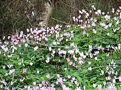 - sowbread (Cyclamen spp., especially Cyclamen persicum the leaves of which are filled and eaten as rolls, the roots are used for saponin)