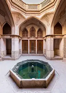 - A large stone is placed in the courtyard of this mosque, and a spherical water basin of stone, large and grand, is placed on top of that.