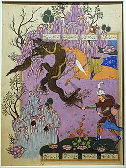 رستم در حال کشتن اژدها (rostam dar hâl-e koštan-e aždahâ, “Rostam slaying the dragon”)