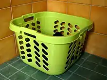 - usually an immovable plastic basket, mostly a laundry basket