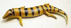 Sometimes claimed to be borrowed from Ancient Greek during the science translation movement, but a fitting form is never given, Byzantine Greek **σκιγκούριον (**skinkoúrion), an extension of σκίγκος (skínkos, “skink”), as if containing οὐρά (ourá, “tail”), is not found. This word is obtained in the same period as Classical Syriac ܣܩܝܢܩܘܪ (sqinqūr), possibly evidenced by the resolution of a geminate stop, to a nasal plus a stop, common in Semitic, but particularly Aramaic. It would then ultimately have relation to Akkadian 𒆲𒁯 (KUN.DAR /šakkadirru, šakkatirru/, “skink”, literally “mongoose of the forest”), originally applied to another relatable creature, but again listed separately as a type of lizard as well.