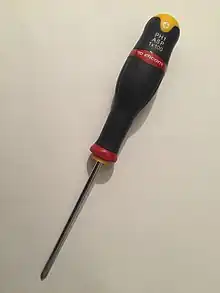 - screwdriver, a hand tool used to turn a screw, thus driving it in or loosening it